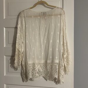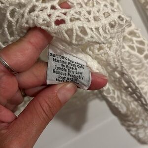 White eyelet and crochet design. Size XS. Bust aorox 23.5 by length aprox 27.5.