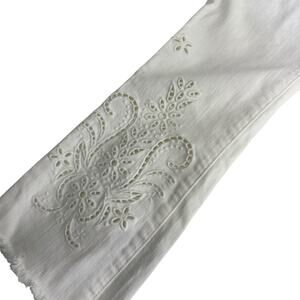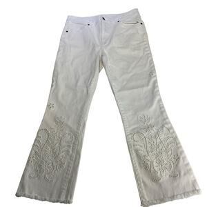Johnny Was Cropped Baby Boot White Jeans women Flowers Eyelet size 32