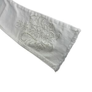 Johnny Was Cropped Baby Boot Jeans White Embroidered Mid Rise Stretch Boho Festival Pants