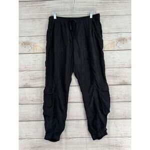 Johnny Was Cupra Rayon Cargo Jogger Pants Womens Small Black Elastic Drawstring