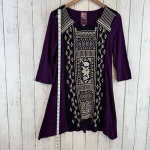 Johnny Was Dark Purple Embroidered 3/4 Sleeve Tunic Boho Cupra Cotton Size Small