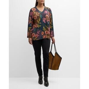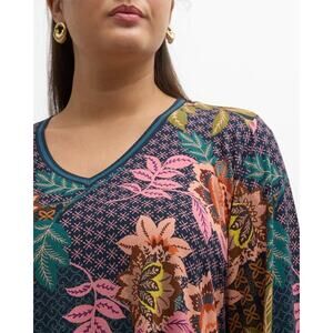 Johnny Was Delfino Tee Floral XXL Colorful Boho Chic V Neck Long Sleeve JWLA