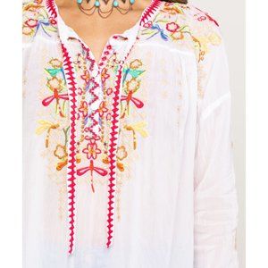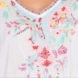 Johnny Was DRAGONFLY BLOUSE size M * exudes bohemian style! * colorful embroidery design along the front and accents on the back. *Rayon Georgette * V-Neck, 3/4 Sleeves Signature Embroidery Care Instructions: Machine Wash Cold, Tumble Dry Low *With an elegant draped look this dragonfly blouse exudes our signature embroidery New with Tags
