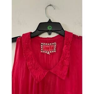 Johnny Was Dress Patchwork Red Peter Pan Collar Sleeveless Small Ruffle RARE