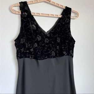 Smoke free. Clean. PLEASE CHECK MEASUREMENTS AS A VINTAGE MEDIUM MAY NOT FIT THE SAME IN MODERN DAY. The Johnny Was dress is a vintage 90s piece featuring a black whimsigoth velvet burnout silk design with long floral patterns. This sleeveless dress has a V-neckline and a pullover closure, making it perfect for a party, cocktail event, or casual outing. Made from rayon fabric with velvet accents, this maxi dress embodies a witchy, grunge, and whimsigoth aesthetic, ideal for those who appreciate vintage, fairy, and vampire-inspired fashion. The dress is designed for regular size M women and is made in the United States.