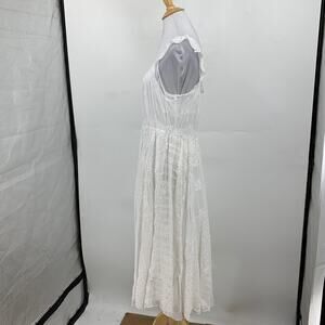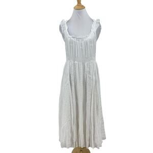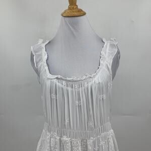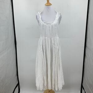 JOHNNY WAS DRESS WOMEN L LARGE WHITE BUY SIREN PLEATED COTTAGECORE EYELET W SLIP