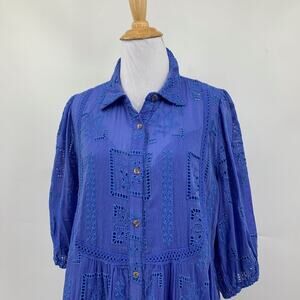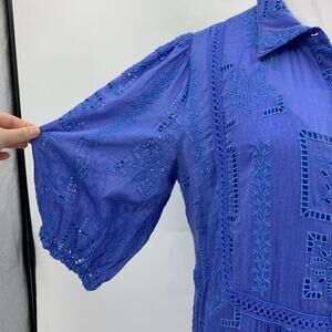 Johnny Was Dress Womens M Medium Silk Blend Sadie Embroidered Eyelet 2 PC Midi