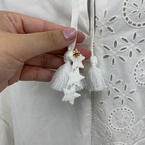 JOHNNY WAS DRESS WOMENS M MEDIUM WHITE JADE EKATERINA EMBROIDERED POCKETS TASSEL
