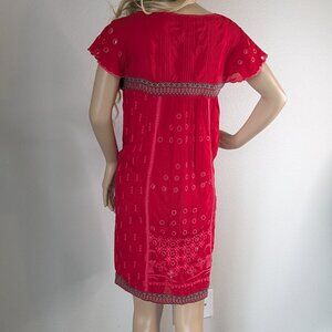 Johnny Was Dress Women's Small Red Daisy Eyelet Embroidered Scalloped V-Neck