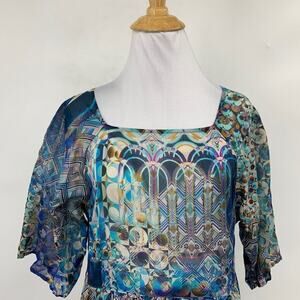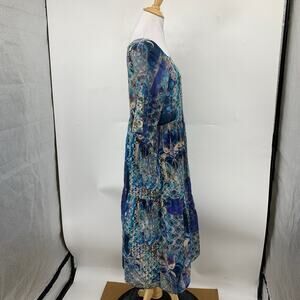 Johnny Was Dress Womens XS Extra Small Multi Cotton Klodi Raglan Tiered Midi