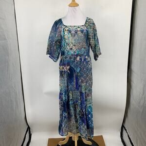 JOHNNY WAS DRESS WOMENS XS EXTRA SMALL MULTI COTTON KLODI RAGLAN TIERED MIDI