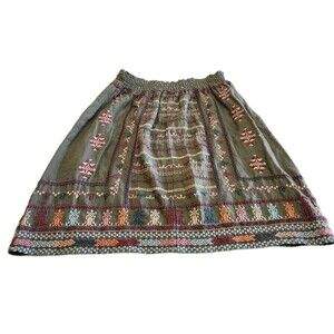 Johnny Was Elastic Waist Linen Embroided Boho Festival Western Skirt SZ XS
