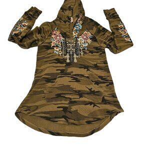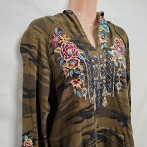 Johnny Was Eleni Thermal Top Size Large Camo Embroidered Camo Hooded Pullover
