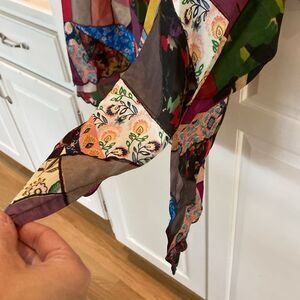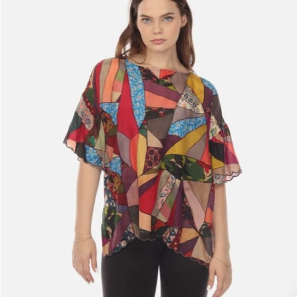Johnny Was Eloise Scalloped Patchwork Print 100% silk boxy oversized Top large