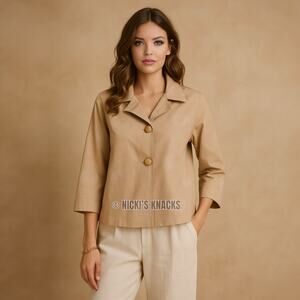 Johnny Was Embroidered Blazer S – Tan 3/4 Sleeve Boho Jacket Neutral Chic