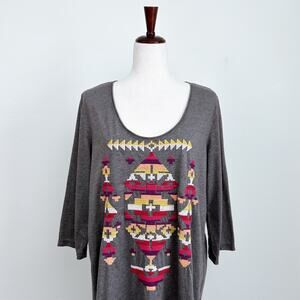 Johnny Was Embroidered Boho Scoop Neck Tunic Top