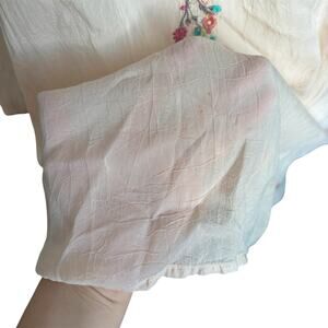 Johnny Was Embroidered Boho Tunic Top Medium Peach Floral Bird Cupra Rayon