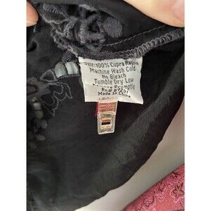 Stunning embroidered button-down shirt by Johnny Was, crafted from silky 100% Cupra rayon in a rich charcoal-black tone. Features intricate tonal floral embroidery on the front, cuffs, and collar for a romantic boho look. Slightly sheer fabric with beautiful drape and subtle sheen. A timeless Johnny Was piece perfect for layering, travel, or effortless bohemian styling.