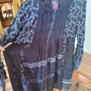 Johnny Was Embroidered Button Front Sz. M Long Sleeve Dress Tunic