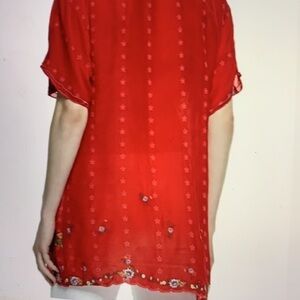 Johnny Was Embroidered Daisy Eyelet Blouse SP