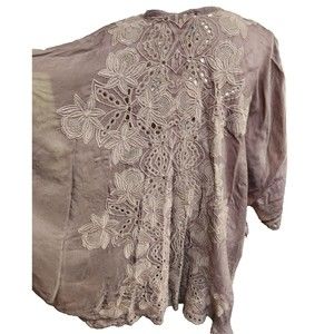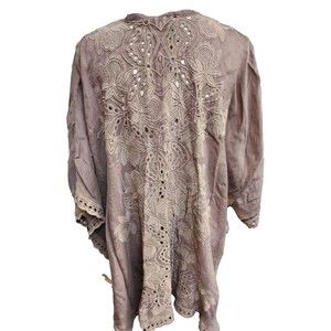 Johnny Was Embroidered Eyelet Oversized Top Cupra Rayon XS