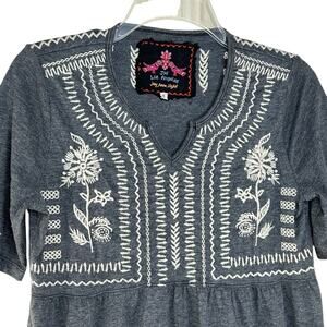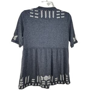 Johnny Was Embroidered Knit Peplum Top Size S Gray Short Sleeve