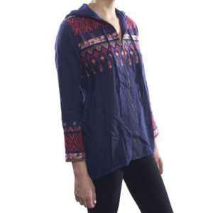 Johnny Was Embroidered Navy Reid Zip Up Hoodie NEW