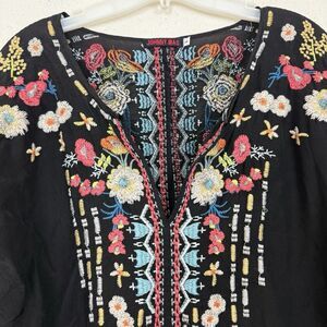 Johnny Was Embroidered Tunic Emily Top Womens Sz Small Black Boho Long Sleeves