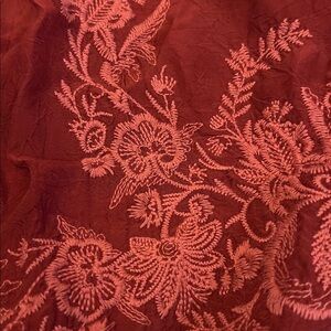 Johnny Was Burgundy Tunic top, there are no tags besides the brand tag, but I believe this is approx L/XL. Top seems to be embroidered silk, embroidery is allover design. Good used condition, see photos for more wear detail.