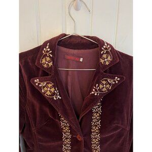 Johnny Was Embroidered Velvet Coat Jacket S Burgundy Floral Boho Style Sz Small