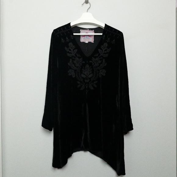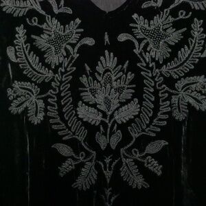 Wear it as a tunic or a dress how ever you may dare. This is a size medium black embroidered Velvet Tunic.
