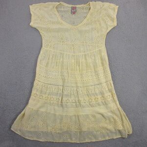 Johnny Was Eyelet Embroidered Tunic Top Dress size L Sheer Fairy Whimsy Boho