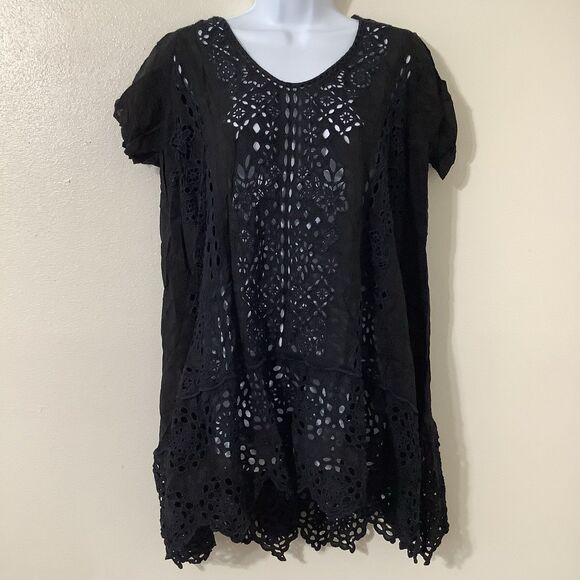 Johnny Was Eyelet Lace Crochet Witchy Whimsigoth Boho Oversized Dress Small