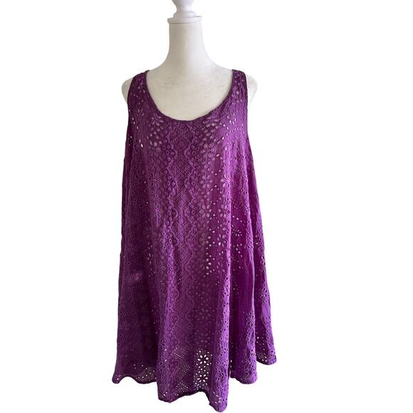 Johnny Was Eyelet Mini Dress Purple SZXXL Boho Floral Romantic Festival