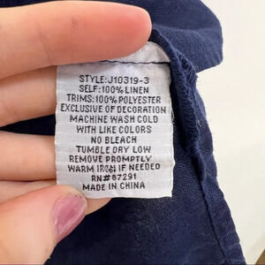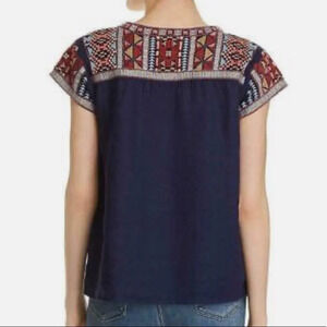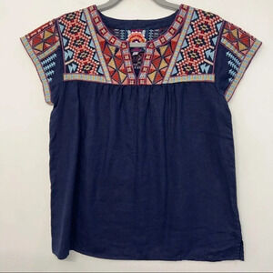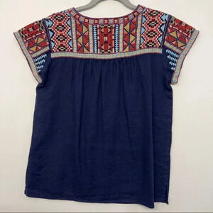Johnny Was Ezra Embroidered Yoke Navy Linen Blouse Top Navy Small