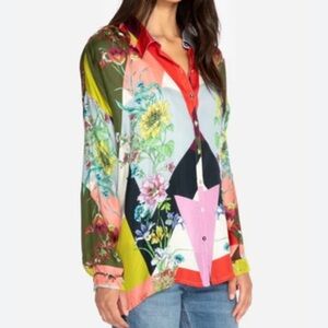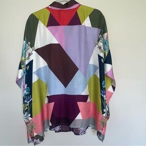 Johnny Was Feza Boxy Button Up Kimono Inspired Blouse L 100% Silk Bohemian
