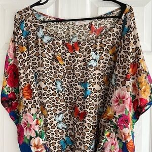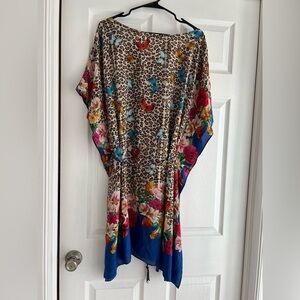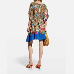 Johnny Was Fleur Butterfly-Print Short Kaftan Dress