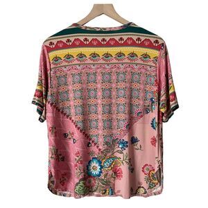 Johnny Was Floral Abstract Print Blouse in Pink. Good used condition with light mark near front paisley print. Size Medium.