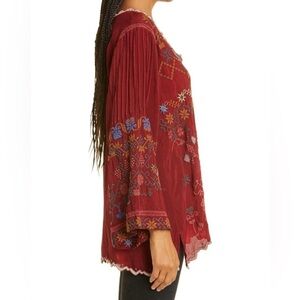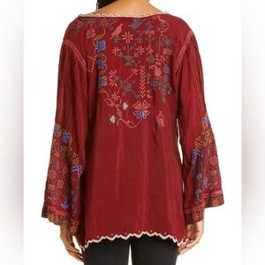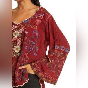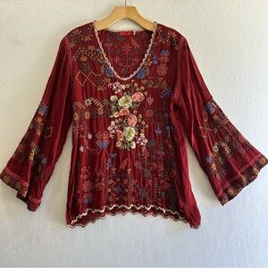 Johnny Was Floral Bird Embroidered Long Bell Sleeve V-neck Top Size Small