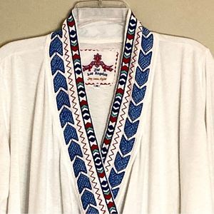 Johnny Was Floral Embroidered Open Draped Waterfall Knit Cardigan Jacket