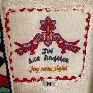 Johnny Was Floral Embroidered Open Draped Waterfall Knit Cardigan White Size M