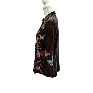 Johnny Was Floral Embroidered Velvet Kimono Sleeve Blouse Extra Small Coffee Bean NWT