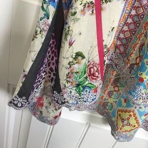 Johnny Was Floral Mixed Medai Split Neck Scallop Hem Georgette Blouse Size Small