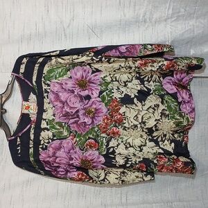Johnny Was Floral Print Women's Top/Blouse 100% Silk Sz S