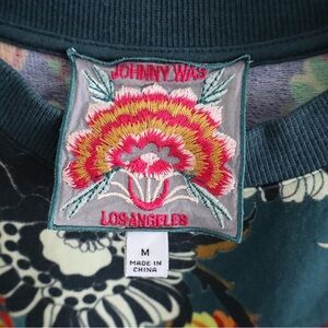 Turn heads in this bold and artistic floral pullover sweatshirt from Johnny Was. Known for their intricate prints and boho flair, this top features oversized statement florals in rich tones of teal, mustard, crimson, and violet. Crafted from a soft cotton-spandex blend, it’s cozy enough for lounging but chic enough for going out.