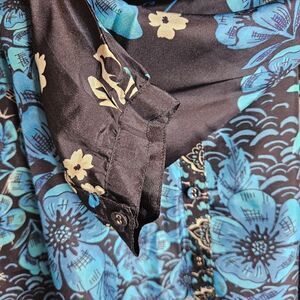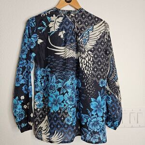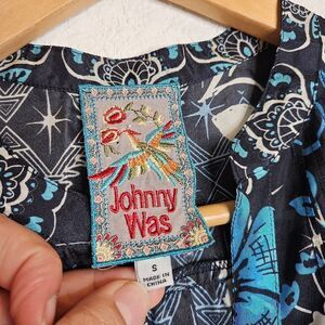 Johnny Was Floral Silk Top, Blue And Black, Size Small