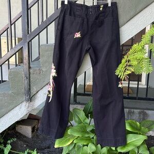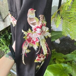 Johnny Was Floral and Birds Embroidered Black Pants Bohemian Resortwear Sz Small