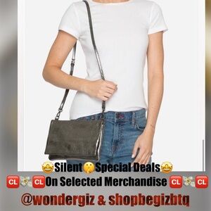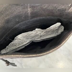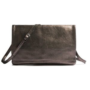 Johnny Was Gemma Laminated Suede Gunmetal Convertible Clutch NWT
