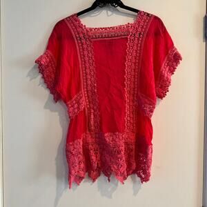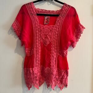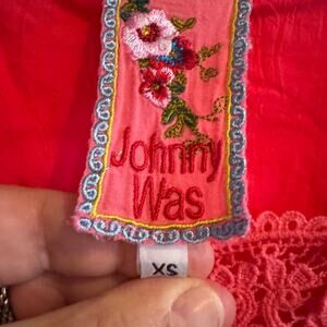 Johnny Was Georgette Top Pink Square Neck Embroidered Short Sleeve Sz XS