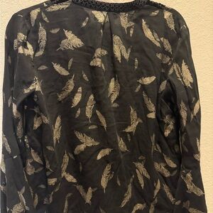 Johnny Was Gold Feather Bell Sleeve Blouse Sz XS